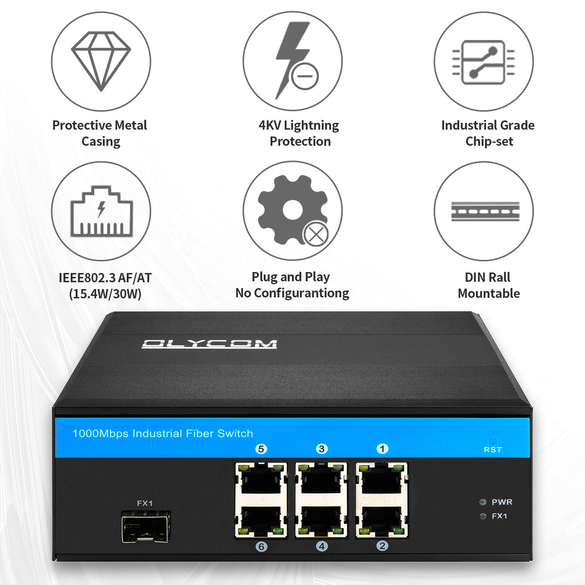 6 Anschlüsse Gigabyte Industrie PoE Unmanaged Switch