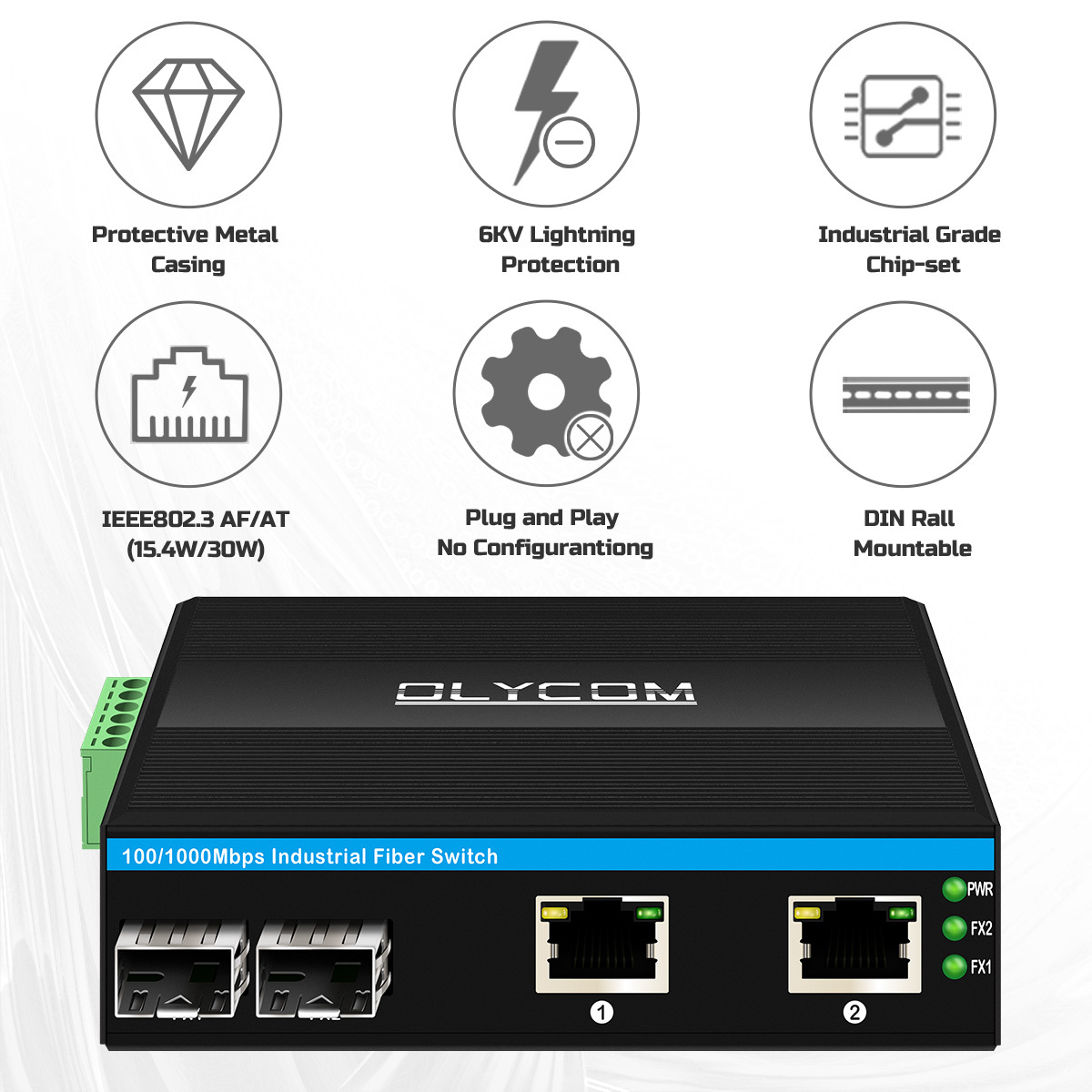 Minifaserkonverter Gigabit-Poe-Schalter 2sfp+2rj45 DC48V Leistungsaufnahme
